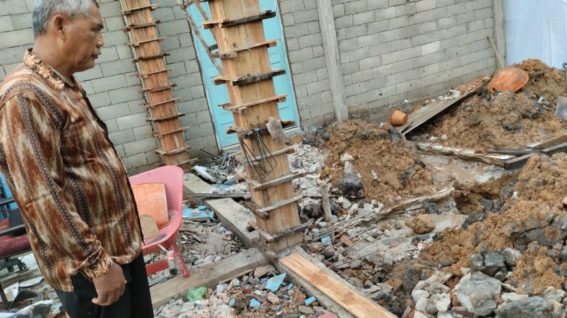 KEPALA DESA MENGECEK BANGUNAN KANTOR DESA.